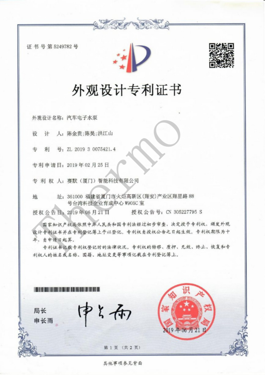 外觀設(shè)計專利證書
